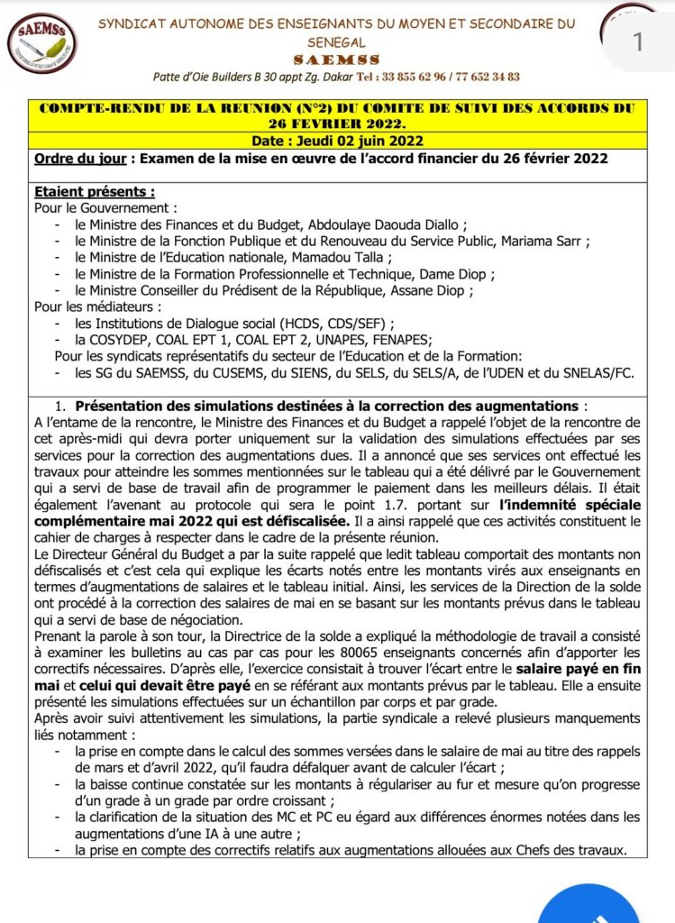 ACTUALITÉS RECENTES COMPTE-RENDU DE LA REUNION (N°2) DU COMITE DE SUIVI DES ACCORDS DU26 FEVRIER 2022. 3 juin 20223 juin 2022 admin4367 Aucun commentaire Lire la suite : COMPTE-RENDU DE LA REUNION (N°2) DU COMITE DE SUIVI DES ACCORDS DU26 FEVRIER 2022.