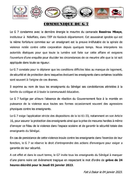 COMMUNIQUE DU SAEMSS ET DU CUSEMS.