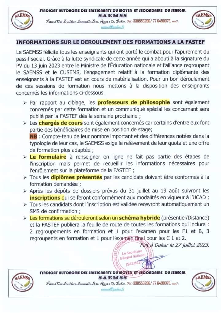 ACTUALITÉS RECENTES FORMATION INFORMATIONS SUR LE DÉROULEMENT DES FORMATIONS A LA FASTEF. 28 juillet 202328 juillet 2023 admin4367 Aucun commentaire